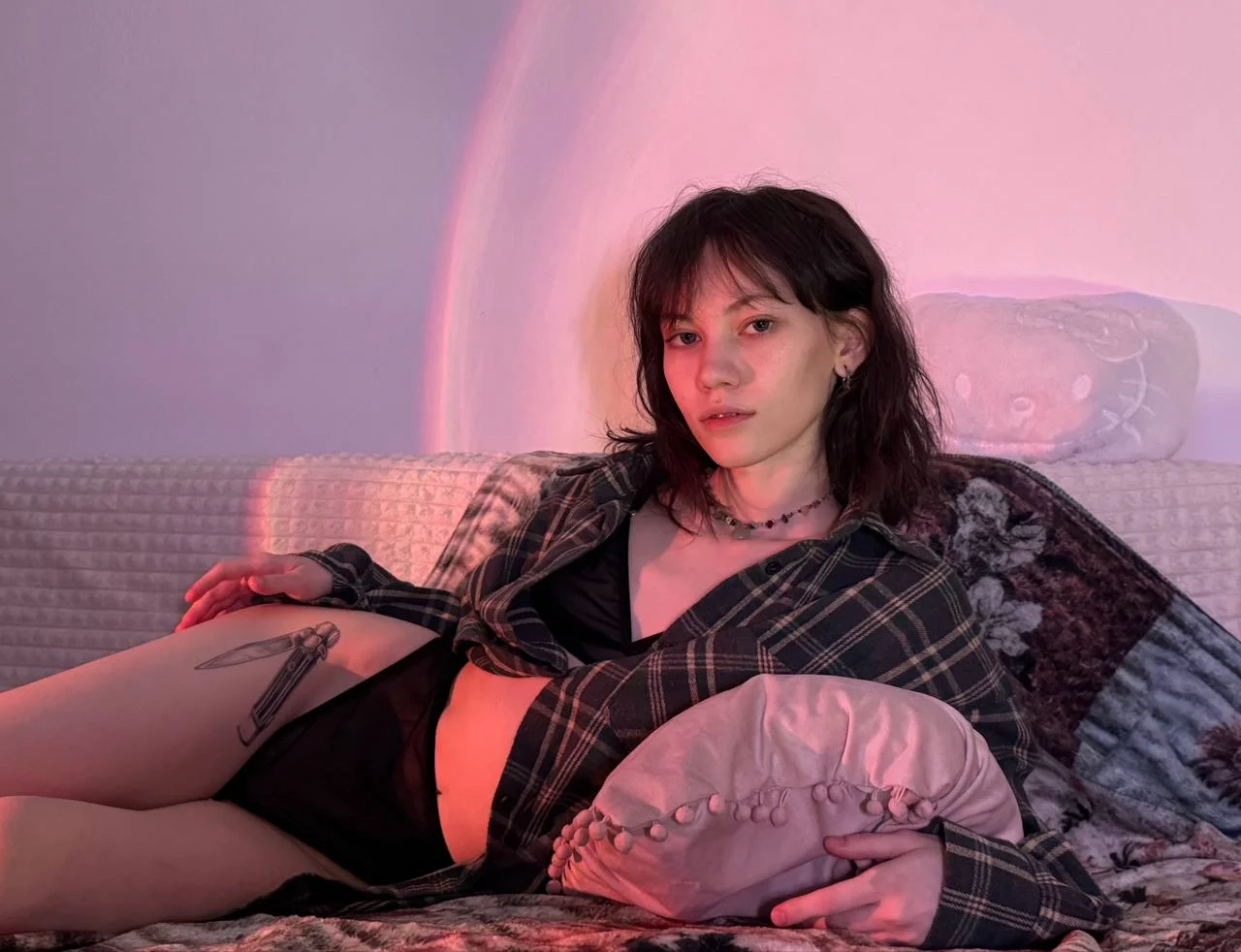 Hi everyone! I'm Mia, pleasure to see you in my room! Please be polite and talkative with me!